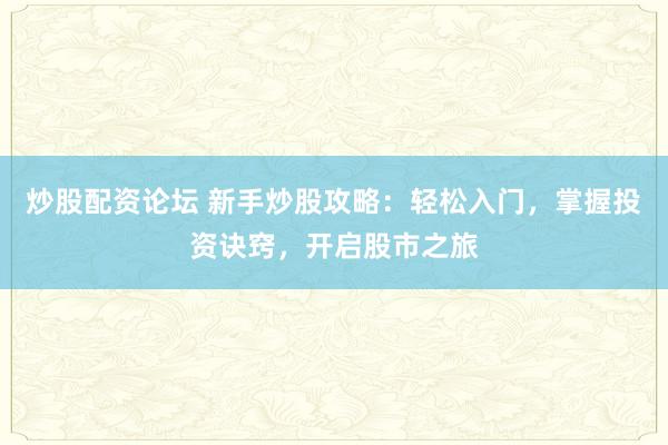 近年来炒股配资论坛,随着经济的持续发展和人们财富积累的增加,越来越多的人开始关注股市,希望通过炒股实现资产的增值。然而,对于许多新手来说,股市的复杂性和风险性常常让他们望而却步。本文旨在为新手提供一份简单易懂的炒股入门攻略,帮助大家掌握投资诀窍,顺利开启股市之旅。
